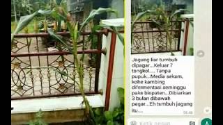 Jagung Liar 7 Tongkol umur 60hari Tanpa Pupuk, media tanam dari sekam padi dan Kohe Kambing difermentasi 7 hari dengan Bio PaTen Gen.5 *8, setelah jadi di taruh di bawah pagar, eh tumbuh Jagung...